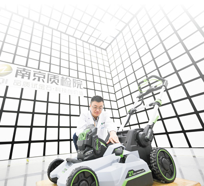 隔壁的控制室内,南京泉峰科技有限公司测试中心安全认证部经理高扬正和技术人员一起操作检测设备,对这款割草机进行辐射测定。结果显示,超低的辐射量符合出口要求。
